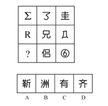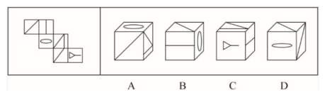 題:邊四個圖形中,只有一個是由左邊的四個圖形拼合(只能通過上、下、左、右平移)而成的,請把它找出來:( )