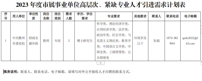 中共衢州市委黨校引進(jìn)高層次緊缺人才公告