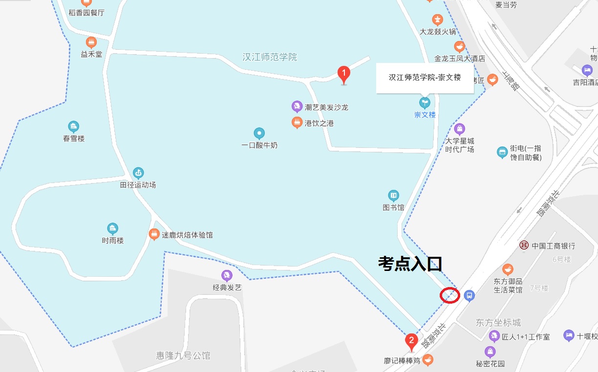 二、漢江師范學(xué)院考點(diǎn)位置地圖