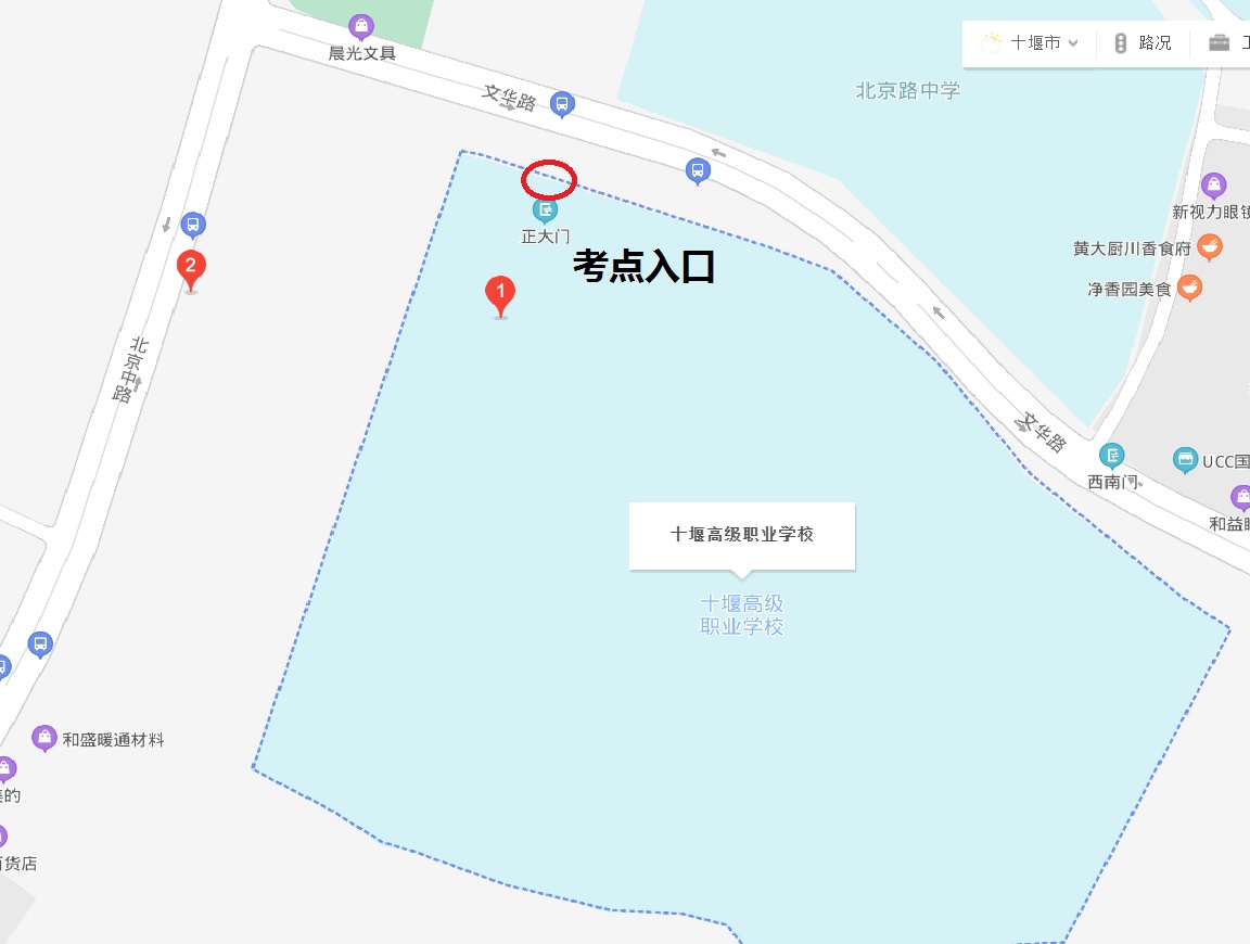 考點(diǎn)入口:文華路十堰高級職業(yè)學(xué)校門口(十堰北京路中學(xué)正對面)。