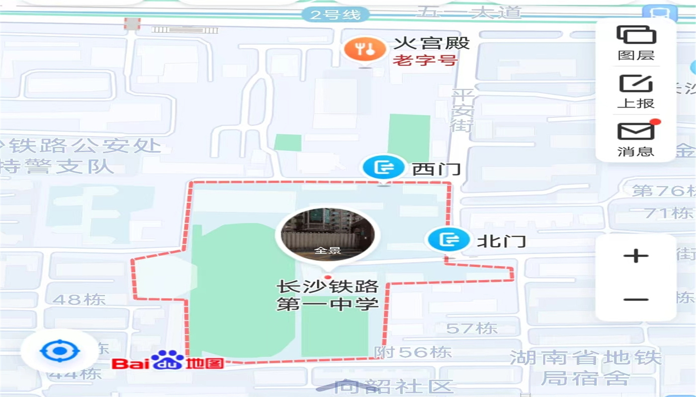 2、長沙鐵路第一中學(長沙市芙蓉區(qū)向韶村平安街90號-正門)