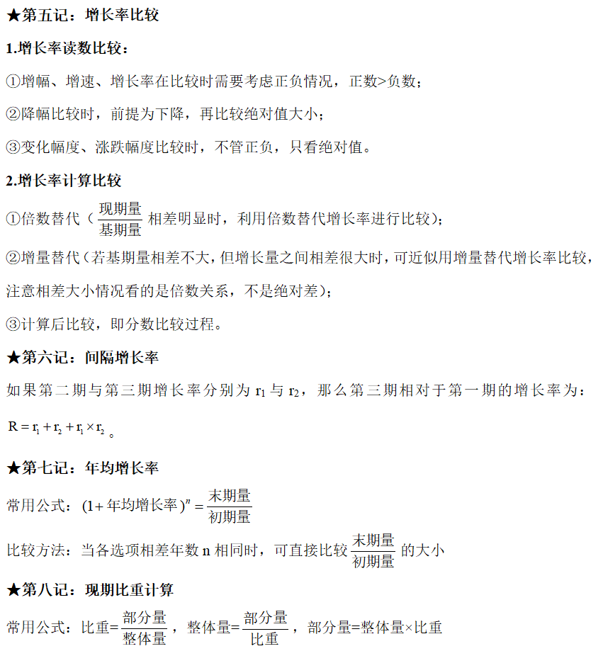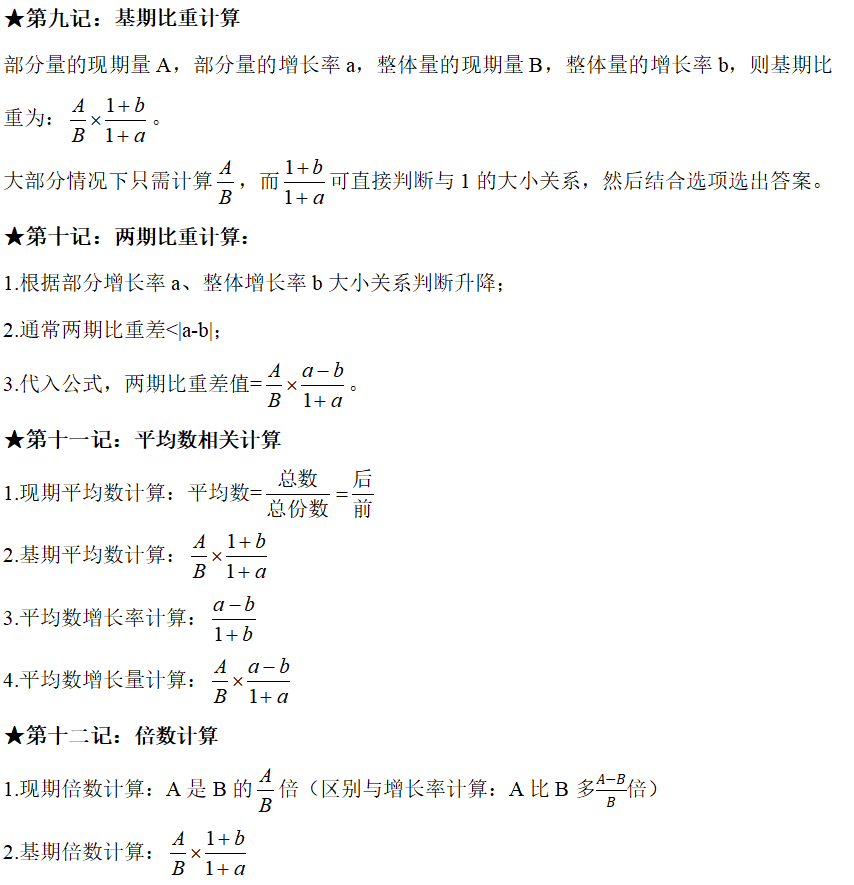 ②若部分增長率a<整體增長率b,則現(xiàn)期比重<基期比重,即比重下降。