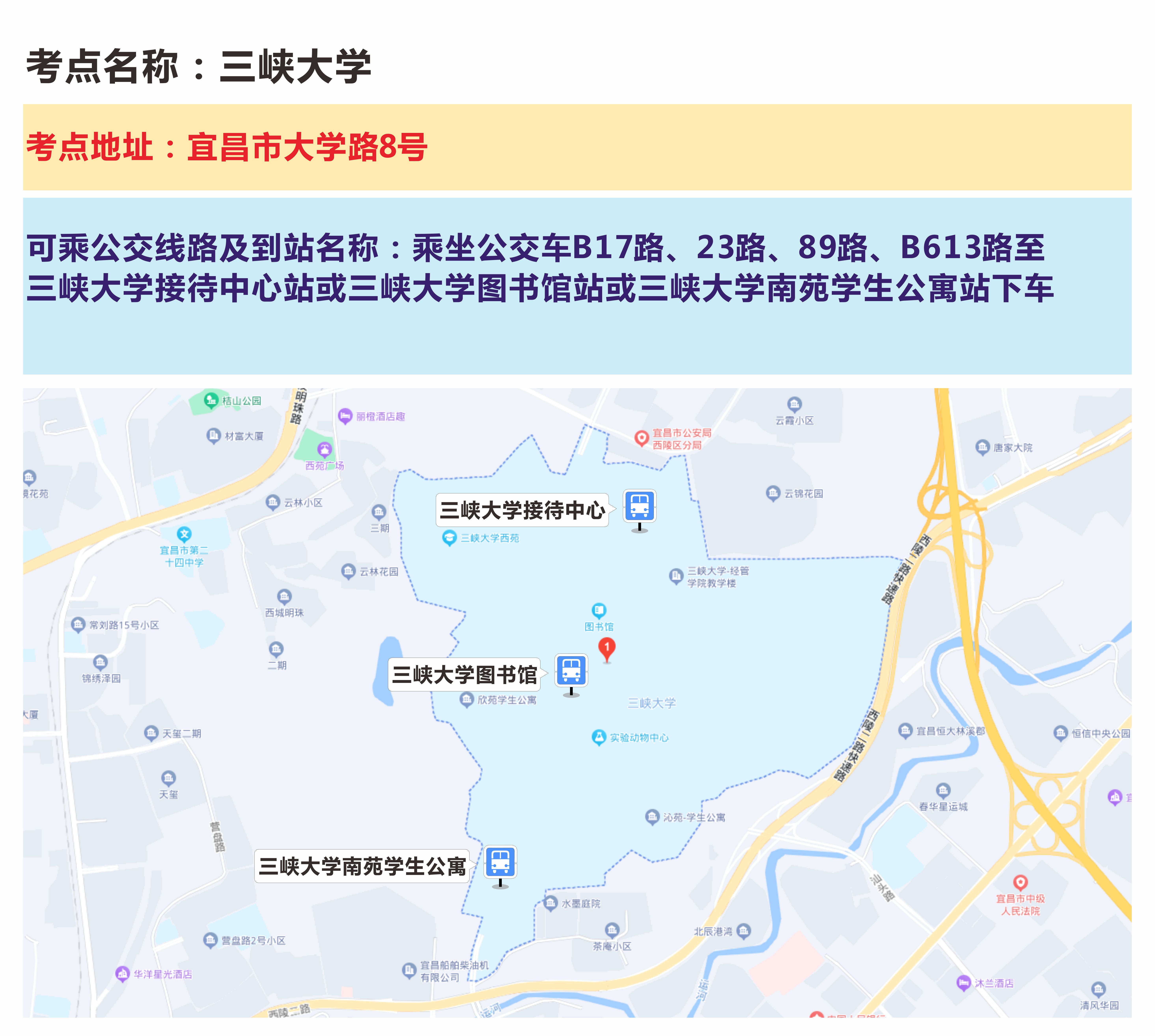 1、三峽大學(xué)考點(diǎn)(宜昌市大學(xué)路8號)