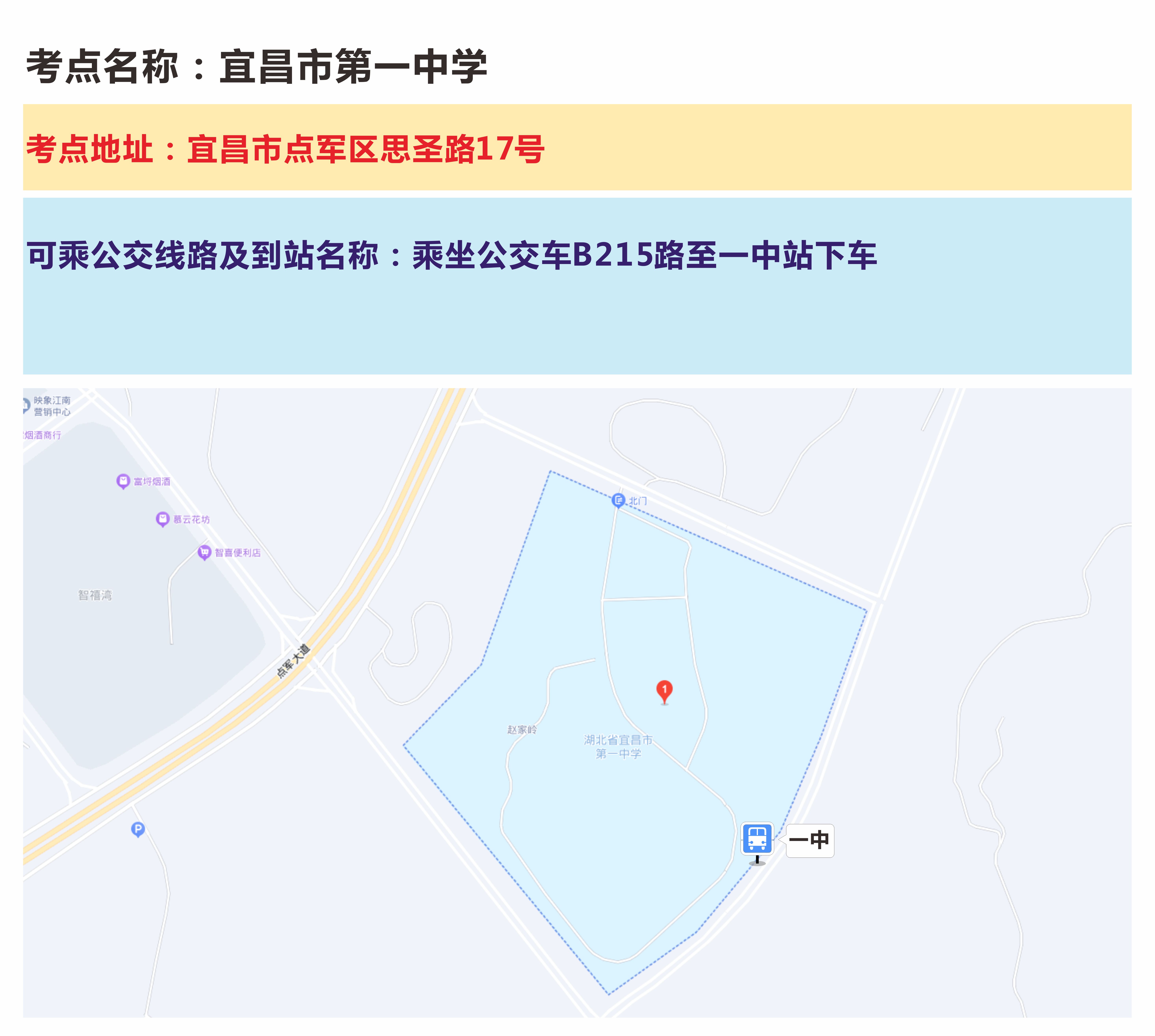 4、宜昌市第一中學(xué)考點(diǎn)(宜昌市點(diǎn)軍區(qū)思圣路17號)