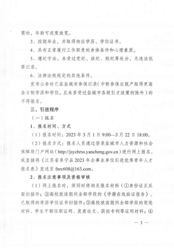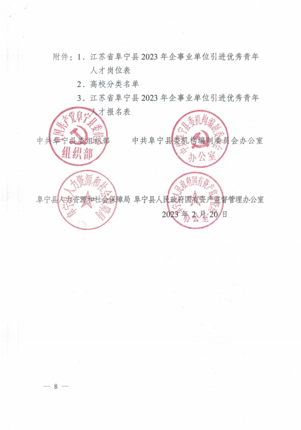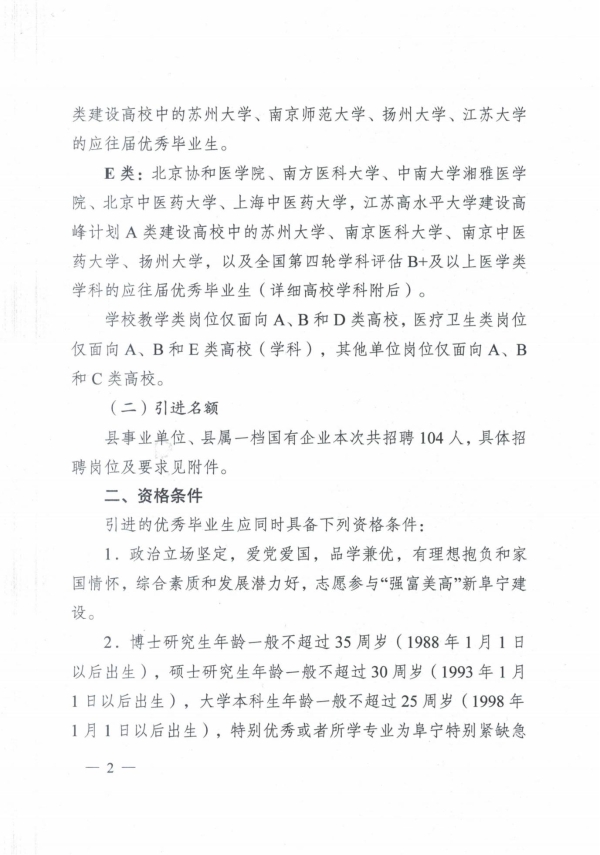 江蘇省阜寧縣2023年企事業(yè)單位引進優(yōu)秀青年人才工作通告