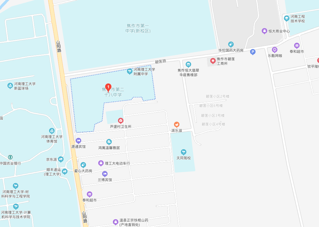 考點:焦作市第二十八中學(xué) 地址:山陽路與碧蓮路交叉口東南角