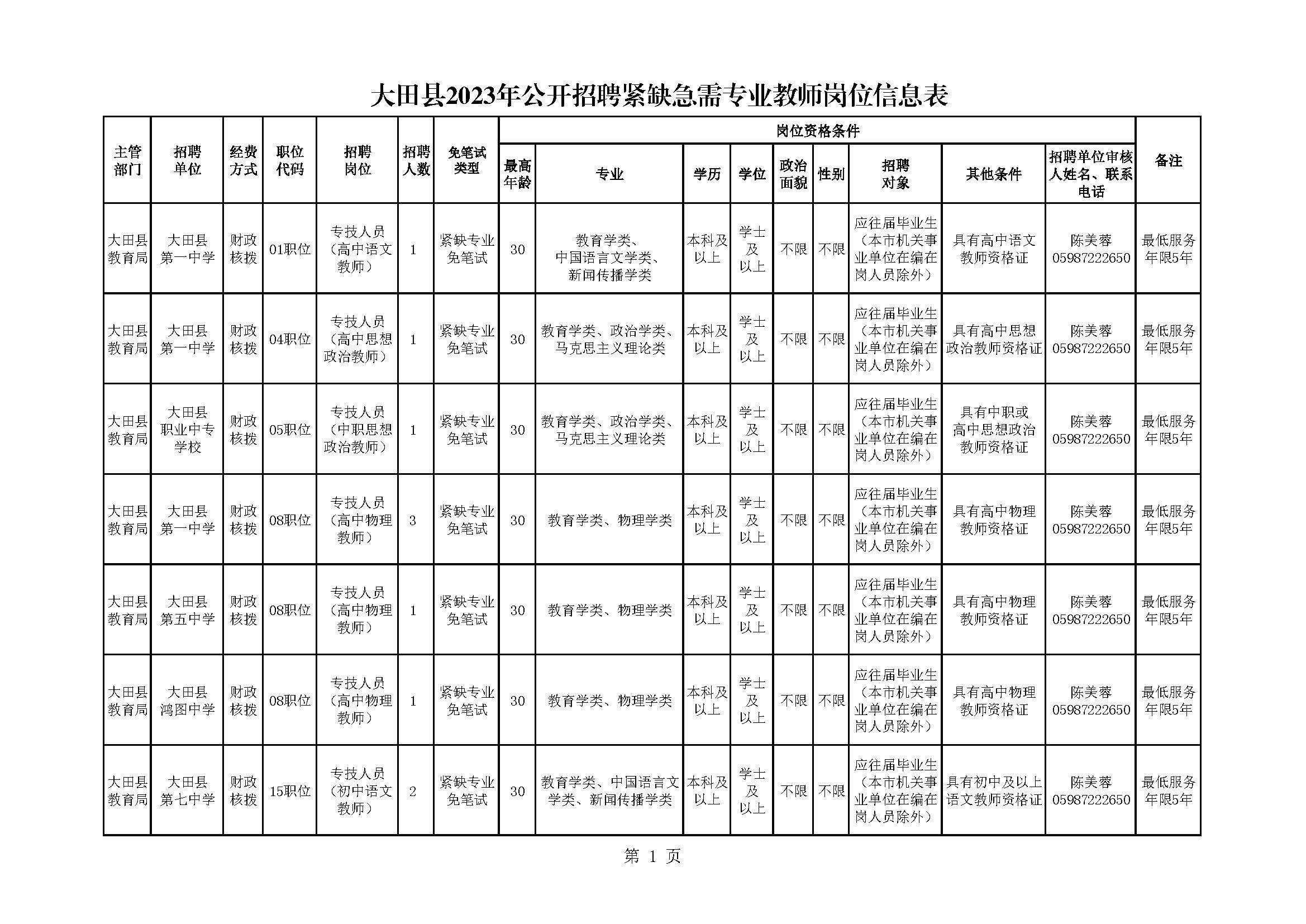 附件:大田縣2023年公開招聘緊缺急需專業(yè)教師崗位信息表.pdf