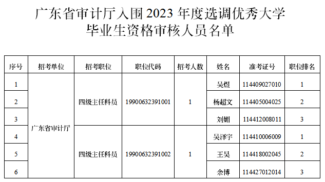 附件:廣東省審計(jì)廳入圍2023年度選調(diào)優(yōu)秀大學(xué)畢業(yè)生資格審核人員名單