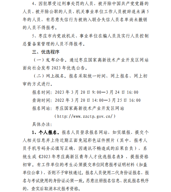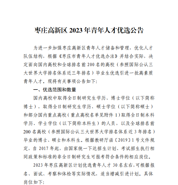 2023年山東棗莊市棗莊高新區(qū)青年人才優(yōu)選公告(30人)