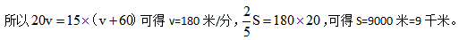 某人騎自行車從甲地到乙地,他從甲地出發(fā),用20分鐘行完全程的五分之二,然后每分鐘比原來多行60米,15分鐘的行程和前面一樣多,甲乙兩地相距多少千米?( )
