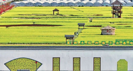 江西省贛州市于都縣著力打造數(shù)字農(nóng)業(yè),推進(jìn)富硒水稻生產(chǎn)設(shè)施化、機(jī)械化、綠色化,實(shí)現(xiàn)糧食提質(zhì)增產(chǎn)和優(yōu)糧優(yōu)價(jià)。圖為梓山鎮(zhèn)潭頭村的“富硒小鎮(zhèn)”(2022年10月21日攝)。視覺(jué)中國(guó)供圖