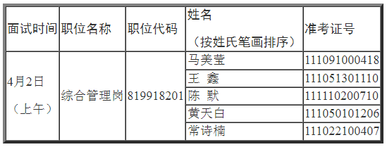 請(qǐng)考生按照面試時(shí)間安排,于4月2日上午7:50前,到北京市通州區(qū)覽秀西路5號(hào)院東門報(bào)到,參加面試。未按時(shí)報(bào)到的,視為自動(dòng)放棄。