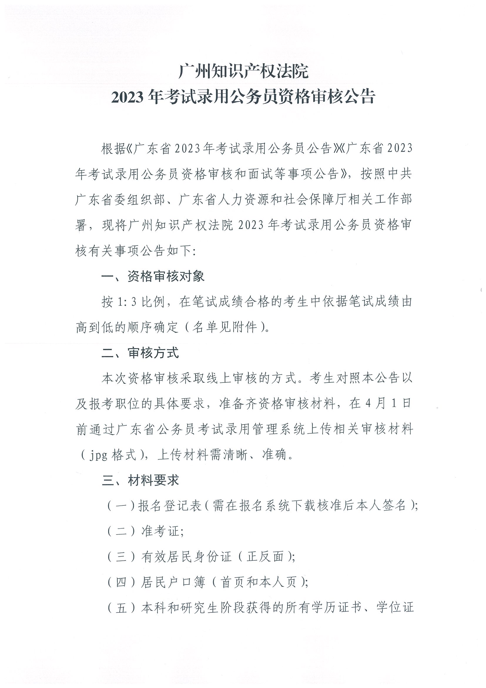 2023年廣東公務(wù)員考試廣州知識(shí)產(chǎn)權(quán)法院公務(wù)員資格審核公告