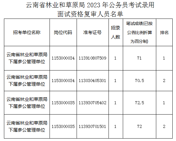現(xiàn)將云南省林業(yè)和草原局2023年公務(wù)員考試錄用面試資格復(fù)審工作有關(guān)事項(xiàng)公告如下: