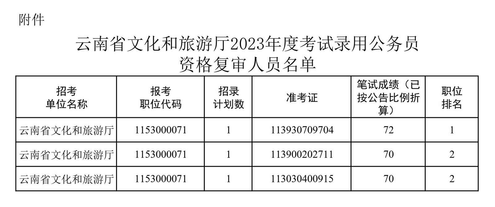 附件:云南省文化和旅游廳2023年度考試錄用公務(wù)員資格復(fù)審人員名單