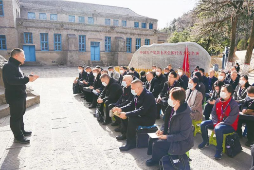 2023年3月1日,中國延安干部學(xué)院學(xué)員在中共七大會址聆聽專題授課“弘揚(yáng)七大精神,增強(qiáng)‘四個意識’”。中國延安干部學(xué)院供圖