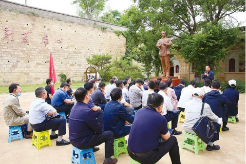 2021年6月19日,中國延安干部學(xué)院學(xué)員在橋兒溝革命舊址聆聽專題授課“維護(hù)中央權(quán)威,嚴(yán)守黨紀(jì)黨規(guī)”。中國延安干部學(xué)院供圖