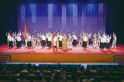 中國浦東干部學院長期重視向學員講述紅色故事、加強黨性修養(yǎng)、傳承紅色基因。圖為音樂劇《國之當歌》在該學院的演出現場。中國浦東干部學院供圖