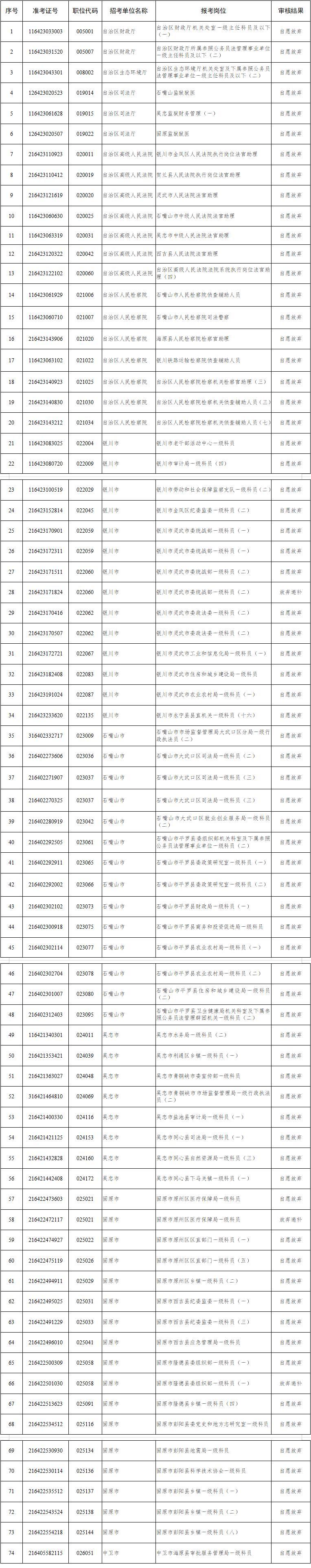 2023年寧夏公務員考試資格復審結(jié)果公告