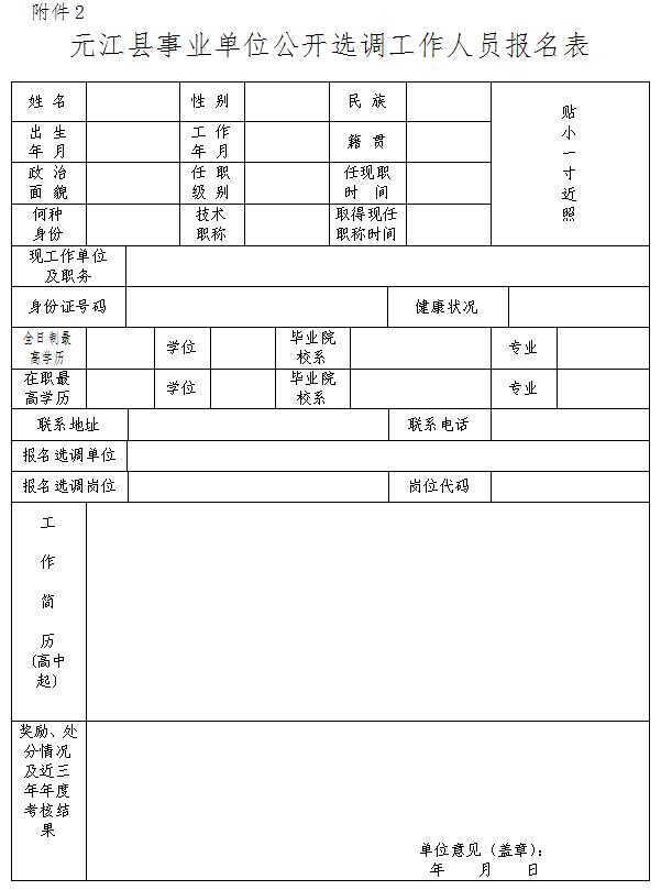 2.元江縣事業(yè)單位公開選調工作人員報名表