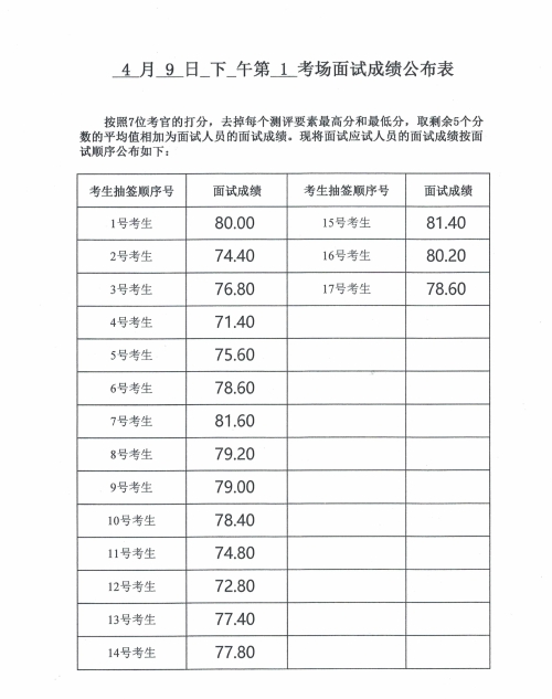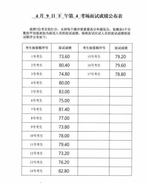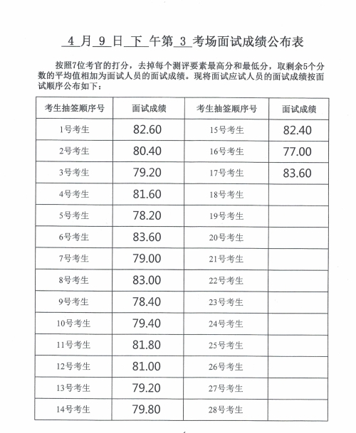 2023年山東威海市公務(wù)員考試面試成績(jī)(4月9日下午)