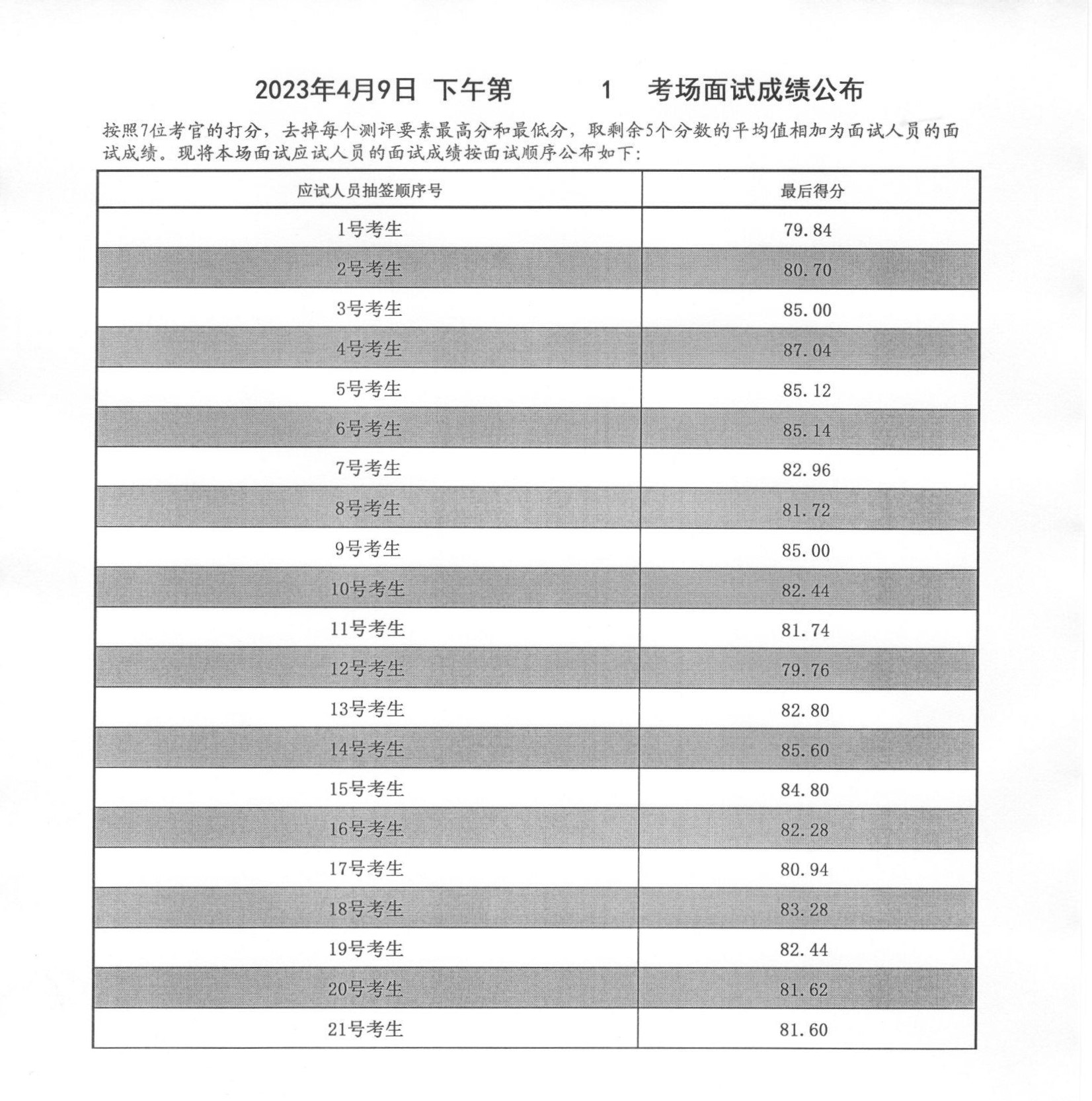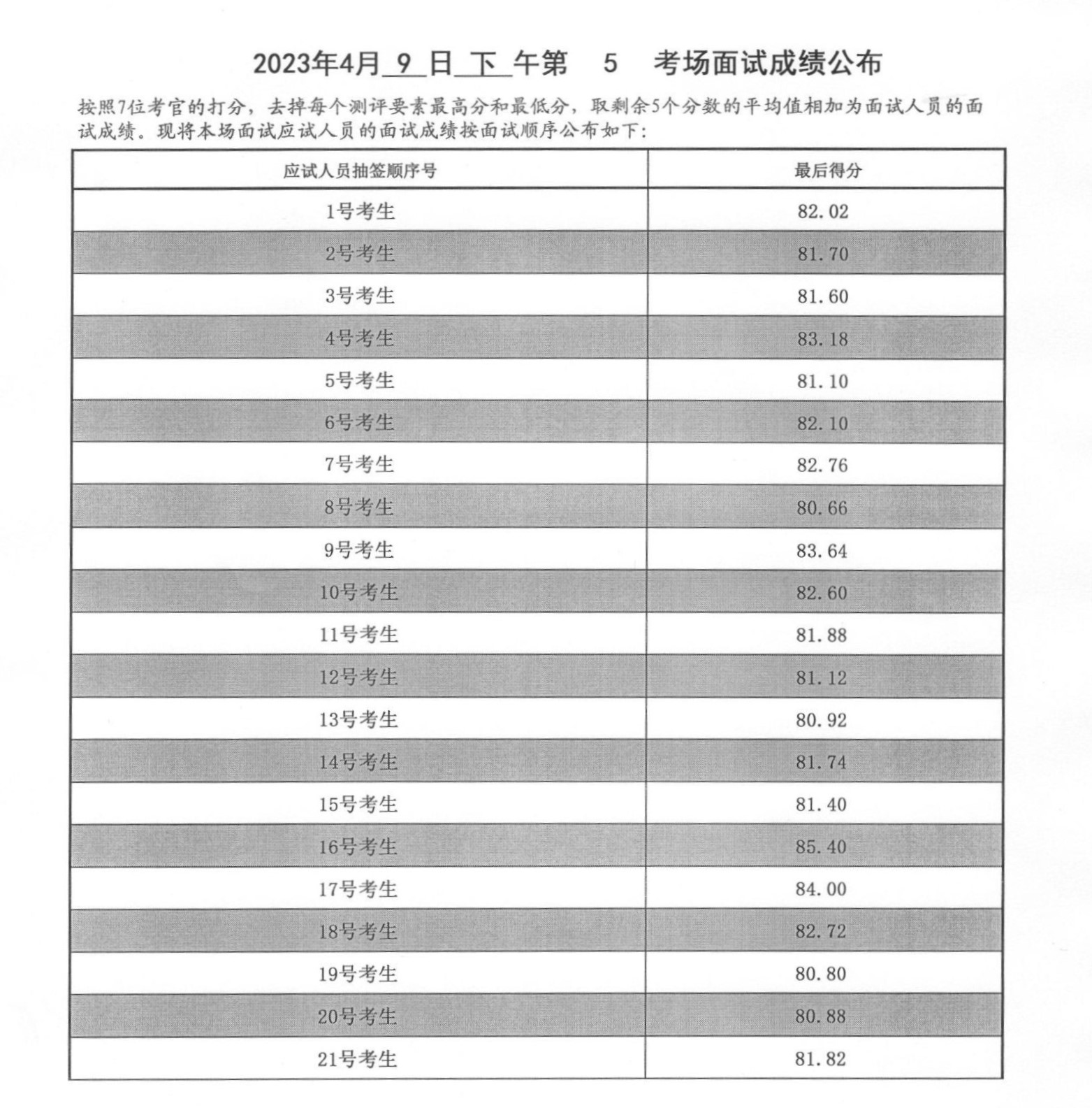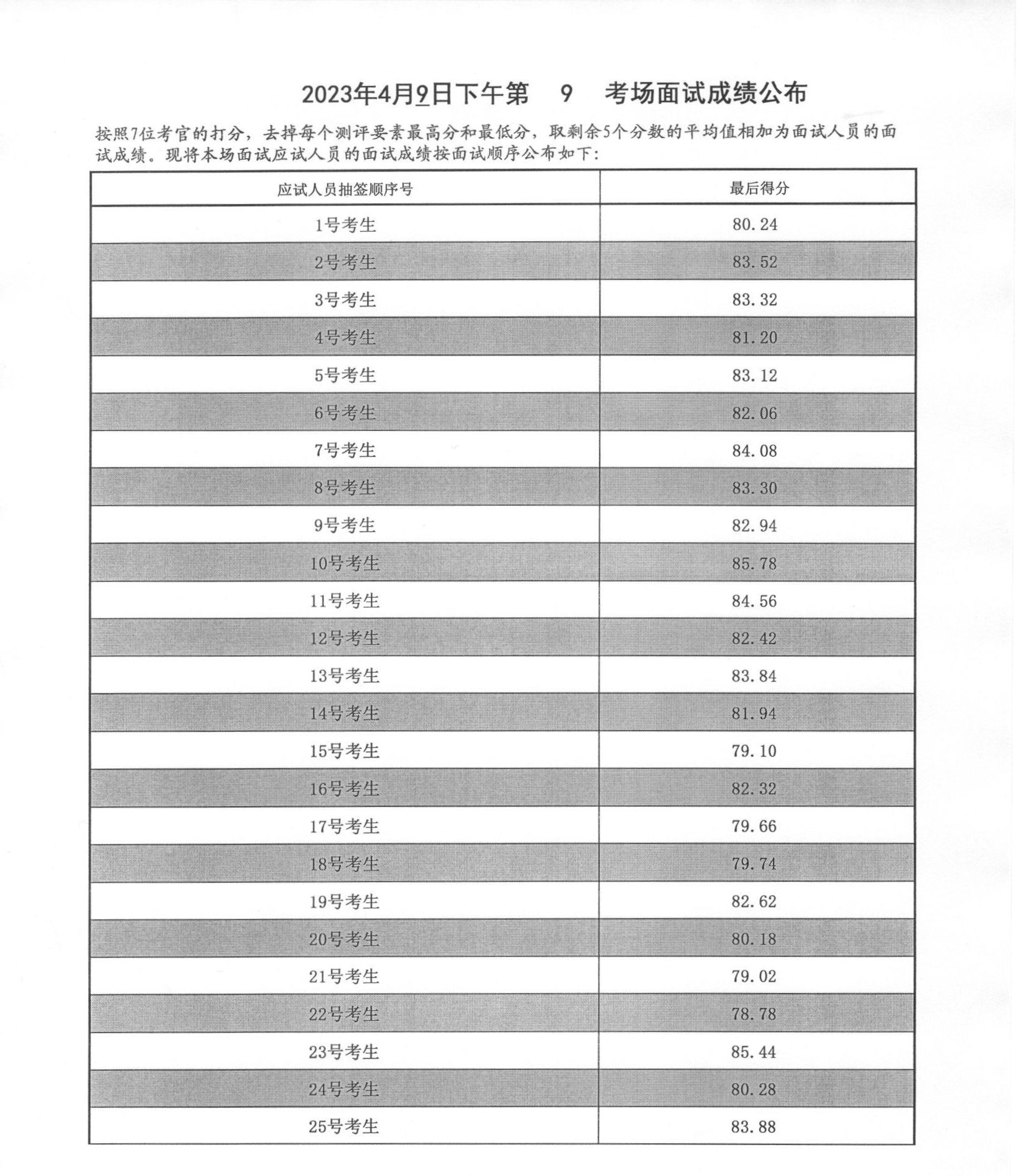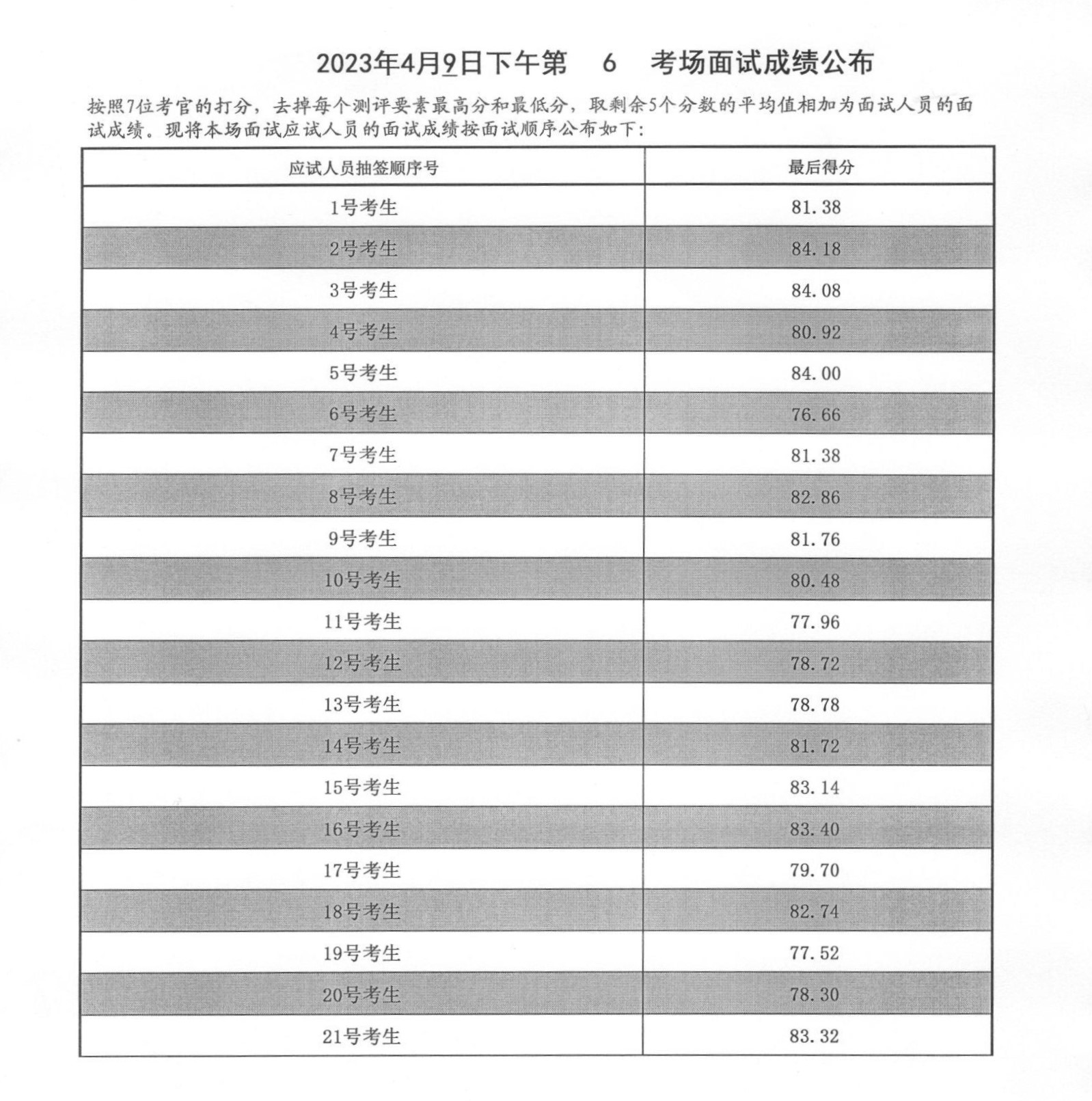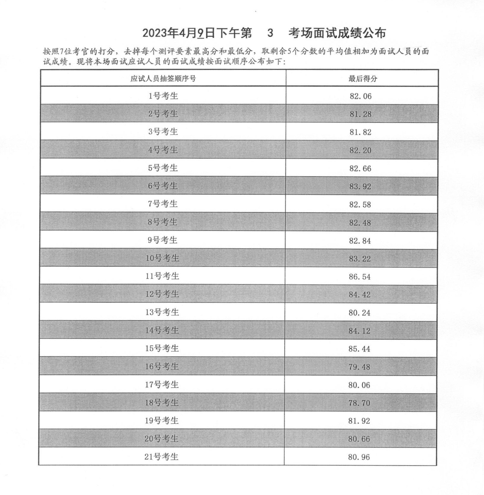 2023年度泰安市各級(jí)機(jī)關(guān)招錄公務(wù)員面試成績(jī)(4月9日下午)