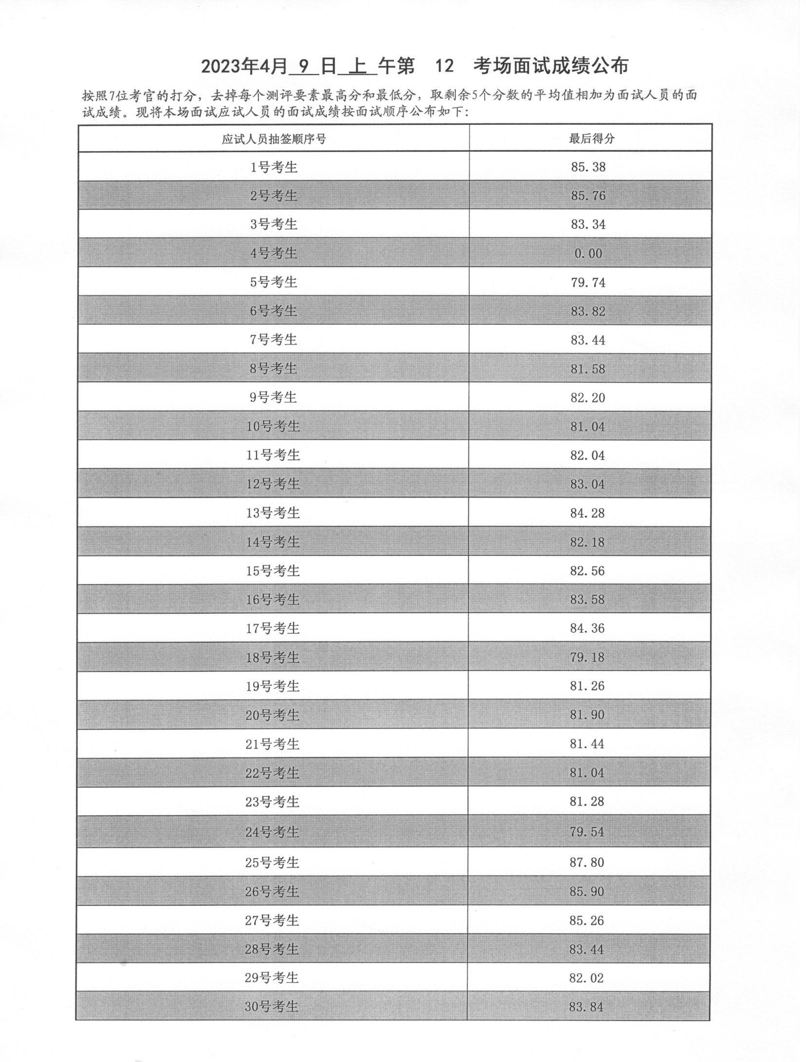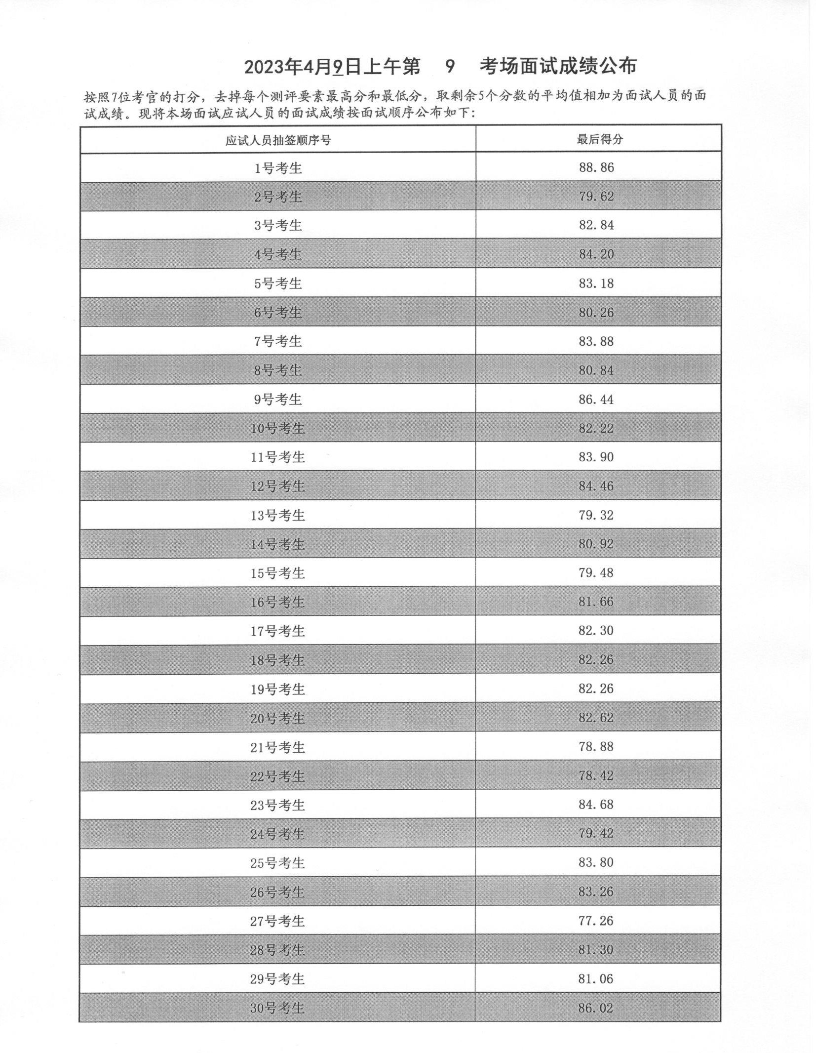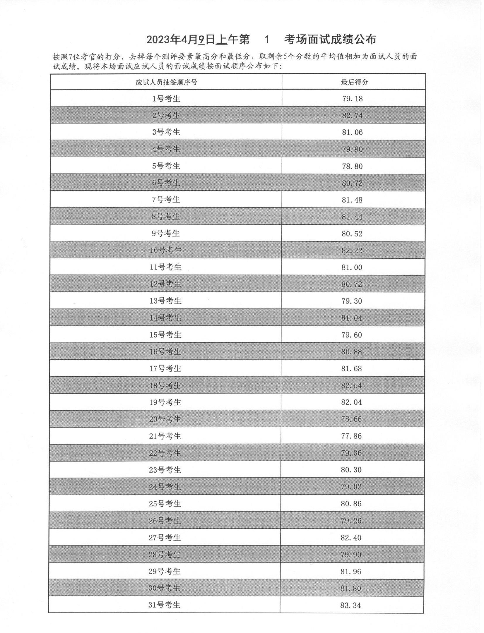 2023年度泰安市各級機關招錄公務員面試成績(4月9日上午)