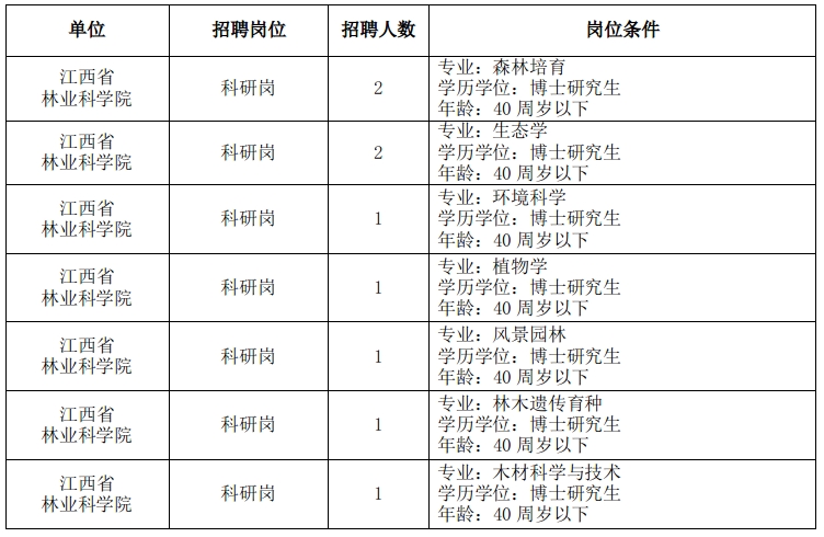 江西省林業(yè)科學院2023年公開招聘高層次工作人員公告