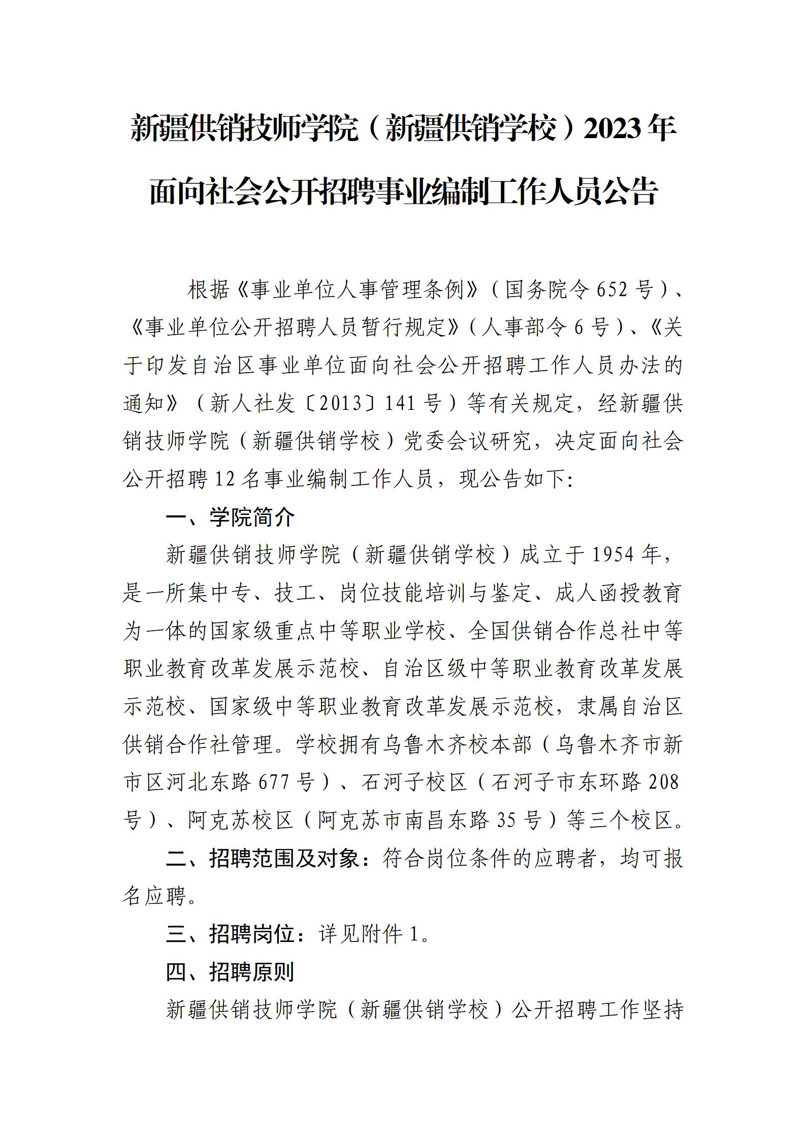 新疆供銷技師學(xué)院新疆供銷技師學(xué)院(新疆供銷學(xué)校)2023年面向社會(huì)公開招聘事業(yè)編制工作人員的公告