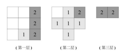 當選項方塊數一致時,無法用數數的方式進行排除,這個時候需要我們根據題干給出的完整圖案進行試拼。但是直接進行拼接太考驗空間思維,那么,有沒有什么方法可以簡單一點、直觀一點輔助我們進行試拼呢?接下來給大家介紹一種小技巧——分層繪圖。