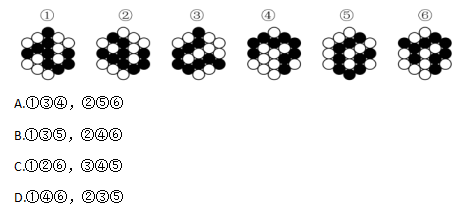 例3:把下面的六個圖形分為兩類,使每一類圖形都有各自的共同特征或規(guī)律,分類正確的一項( )