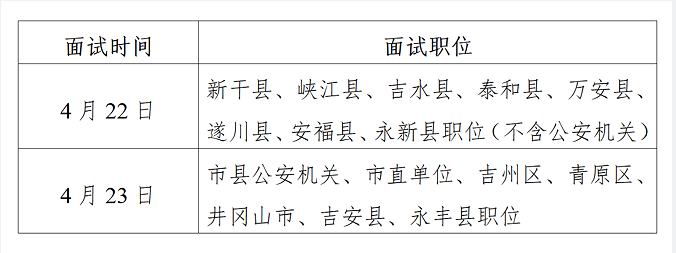 吉安市2023年度考試錄用公務員面試將于4月22日至23日舉行,現(xiàn)將相關事項溫馨提示如下: