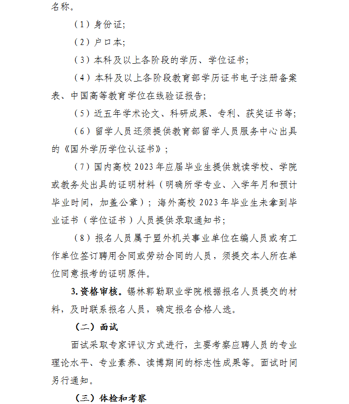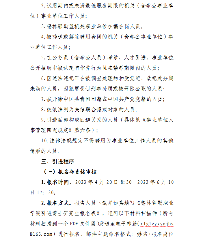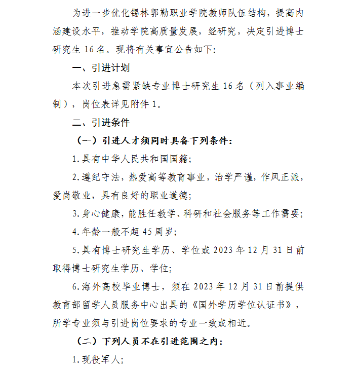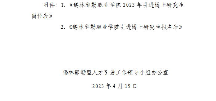 錫林郭勒職業(yè)學(xué)院2023年引進(jìn)博士研究生公告