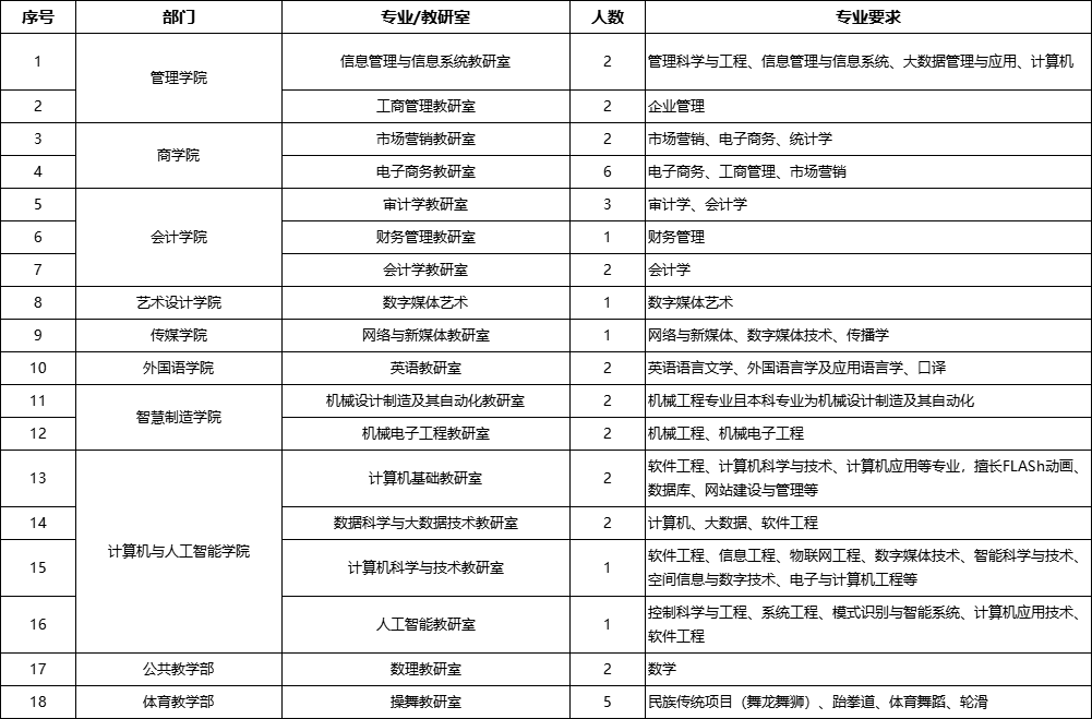 2.一般教師要求碩士研究生畢業(yè)并獲得碩士學(xué)位,本碩專業(yè)相同或相近;一直在高校從事教學(xué)工作并取得講師任職資格可適當(dāng)放寬;