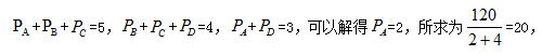 【答案】D【解析】題目最后求灌滿水池的時間,時間=工作量÷工作效率。題干中既不知道工作量也不知道對應(yīng)的工作效率,只知道一些其他工作方式的工作時間,設(shè)出工作量或者工作效率中的一個,另一個就可以表示出來。因為不同合作方式效率各不相同,但工作量是相同的,所以設(shè)工作量表示工作效率會更方便。并且工作量要除以工作時間,所以設(shè)工作量為時間的最小公倍數(shù)會方便計算。綜上可以設(shè)工作量為24、30、40的最小公倍數(shù)120,則