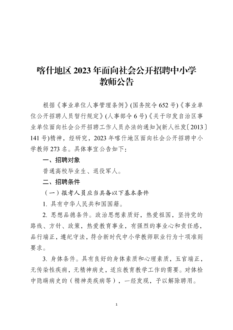 喀什地區(qū)2023年面向社會公開招聘中小學(xué)教師公告