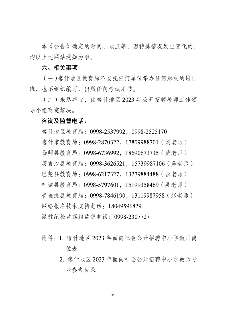 附件1 喀什地區(qū)2023年面向社會公開招聘中小學(xué)教師招聘崗位表