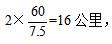 即自行車騎行兩公里的時間為7.5分鐘,所以騎行1小時(60分鐘)的距離為