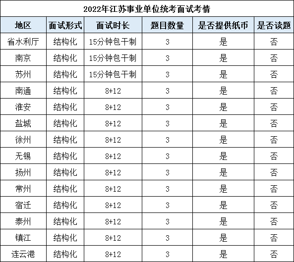 江蘇事業(yè)單位面試的形式主要是結(jié)構(gòu)化面試,各地面試形式如下: