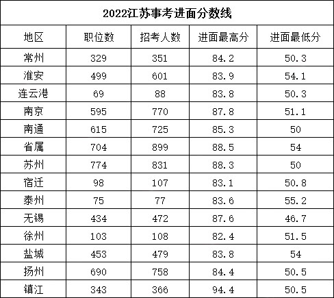 下面是2022江蘇事業(yè)單位統(tǒng)考進(jìn)面分?jǐn)?shù)線,供參考: