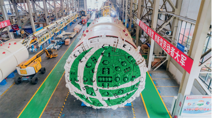 中央企業(yè)積極落實主題教育總要求,努力使主題教育成為提高企業(yè)核心競爭力、增強核心功能、推動企業(yè)攻克“卡脖子”核心技術(shù)難題的過程。圖為2023年4月20日,全球首臺可變徑斜井巖石隧道掘進機“天岳號”在中國鐵建重工集團長沙第一產(chǎn)業(yè)園下線。國務(wù)院國資委供圖
