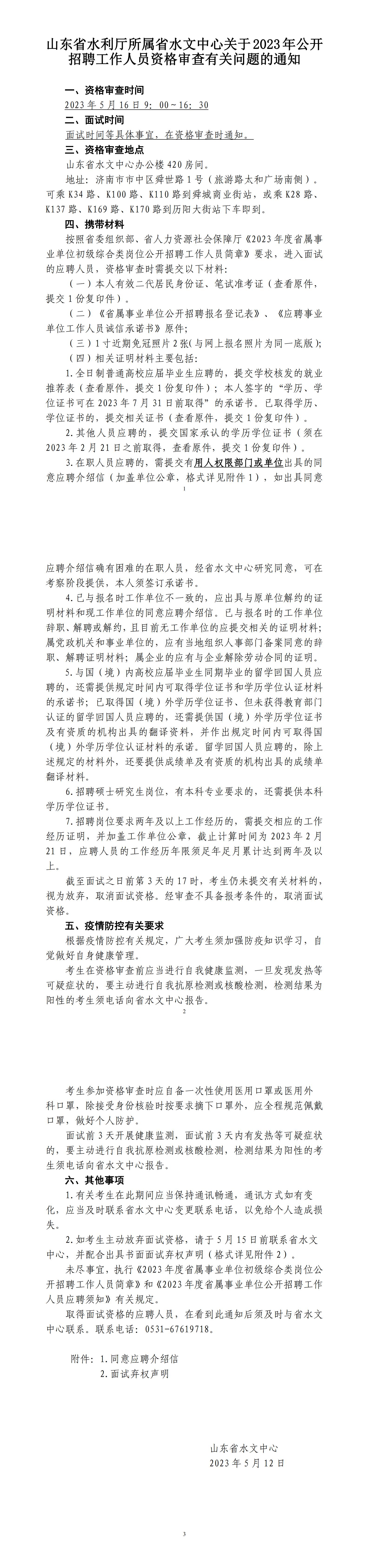 2023年山東省水文中心招聘資格審查有關(guān)問(wèn)題通知