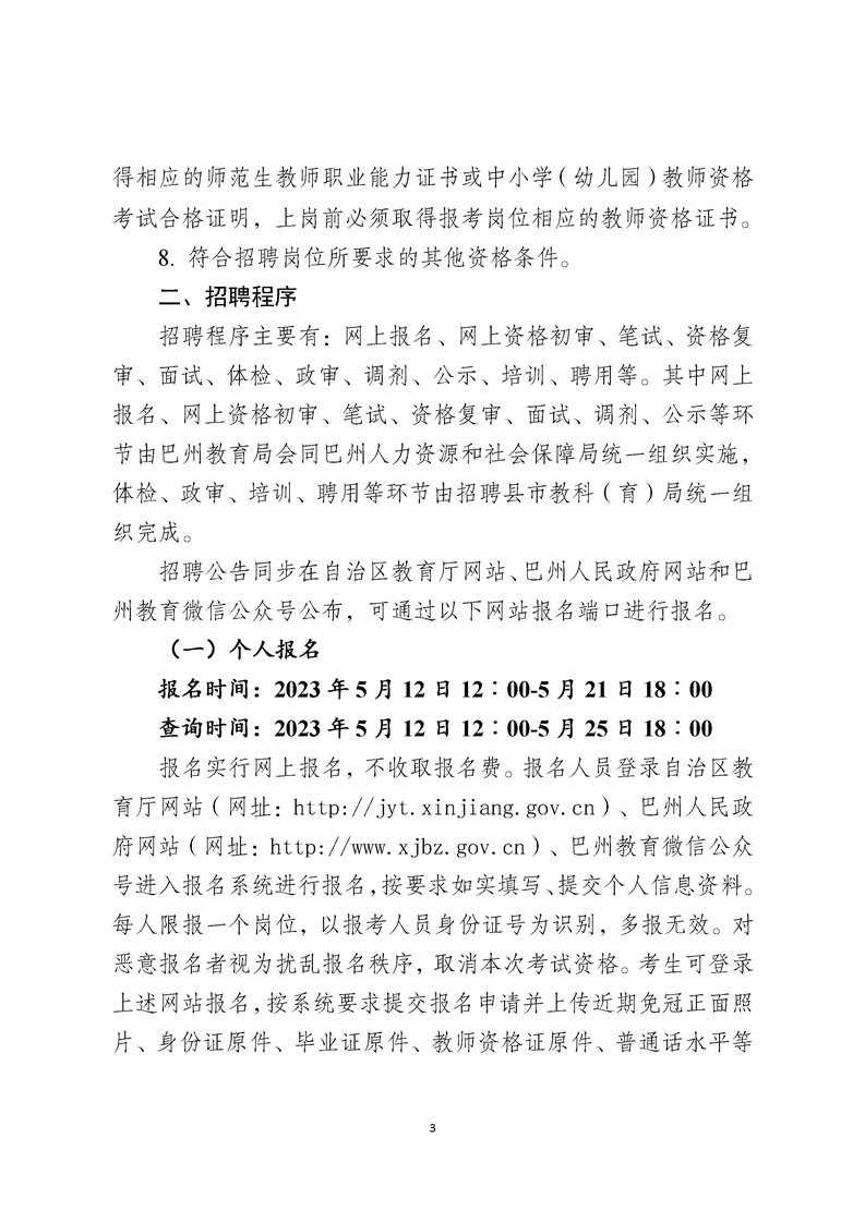 2023年新疆巴州巴音郭楞蒙古自治州招聘中小學(xué)和幼兒園教師公告