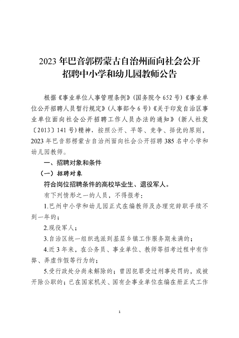 2023年巴音郭楞蒙古自治州面向社會公開招聘中小學(xué)和幼兒園教師公告
