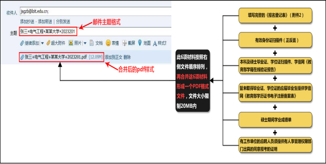 3報(bào)名注意事項(xiàng)。報(bào)名材料按以下順序排列,再合并所有材料形成單個(gè)PDF格式文件,文件大小限制在20MB內(nèi)(如圖1)。