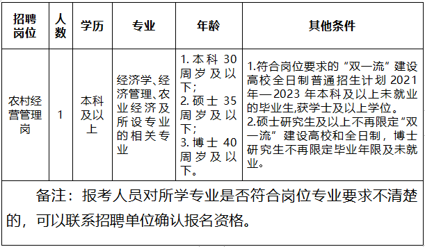 符合崗位要求的“雙一流”建設(shè)高校全日制普通招生計劃2021年—2023年本科及以上未就業(yè)的畢業(yè)生,獲學(xué)士及以上學(xué)位。碩士研究生及以上不再限定“雙一流”建設(shè)高校和全日制,博士研究生不再限定畢業(yè)年限及未就業(yè)。年齡計算截止報名當(dāng)天。