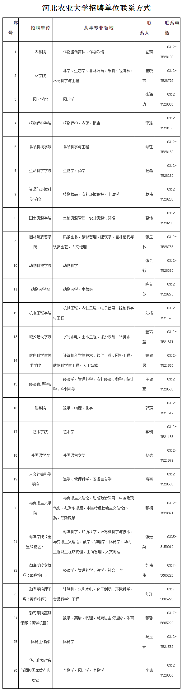 聯(lián)系人:河北農(nóng)業(yè)大學(xué)人事處陳老師、彭老師