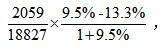 由于9.5%<13.3%,故比重下降,排除A、B。又13.3%-9.5%=3.8%,前面是小于1的式子,故其乘積必然小于3.8%,故只有D正確。