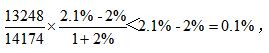 接下來由于14.4%-11.5%=2.9個百分點,而1+14.4%>1,2.9個百分點除以一個大于1的數得到的結果必定小于2.9個百分點,