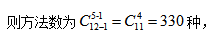【答案】C【解析】結(jié)合題意,即將12個(gè)相同元素分給5個(gè)不同的對(duì)象,每個(gè)對(duì)象至少一個(gè),符合隔板模型的基本特征,